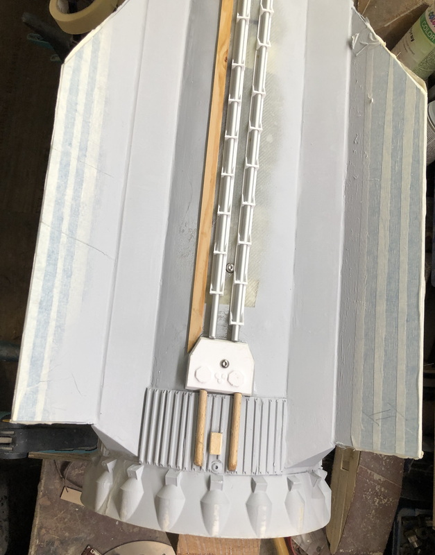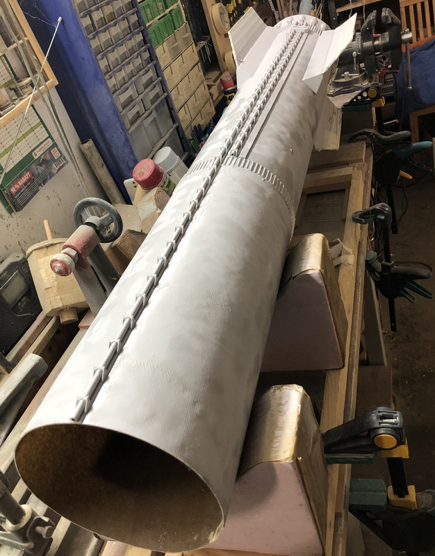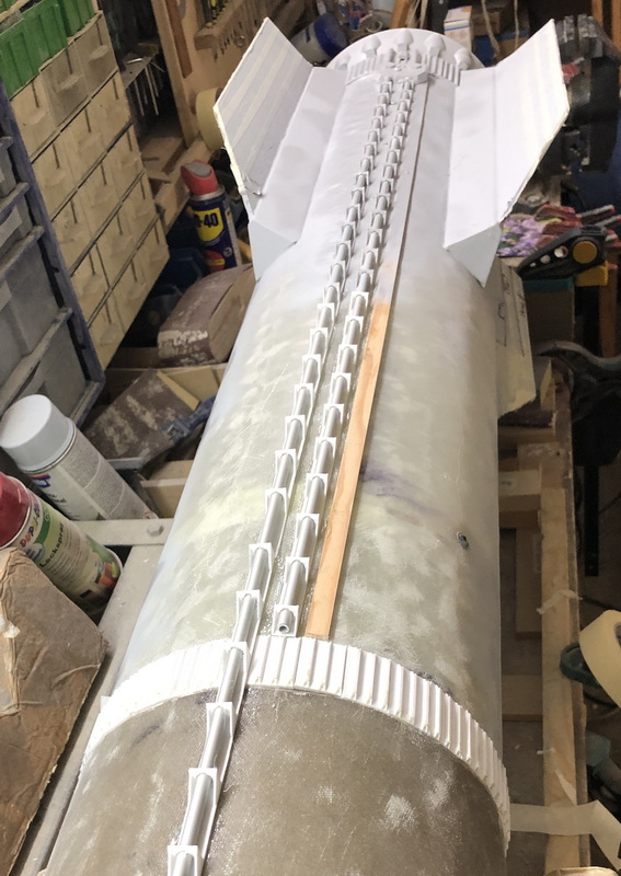 Weitere Scale-Elemente werden drauf geklebt: Vielen Dank an Ralf Berenbrinker, welcher unermüdlich seinen 3D-Drucker gequält und mir die unglaublichen 5m Haltestrips für die Treibstoffleitungen und noch so einige anderen Teile gedruckt hat.  Rolli