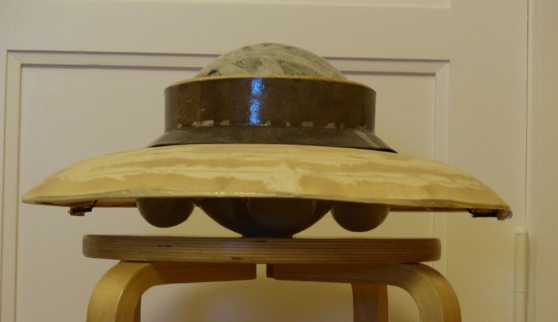 Die Halbkugeln sind jetzt fertig und die Haube zusammengeklebt. Ich bin mit dem Ergebnis sehr zufrieden. Wenn man auf die Luftballons erst Papierstreifen mit Tapetenleim klebt und dann erst laminiert, kann man das sehr schön wieder vom Luftballon abnehmen: