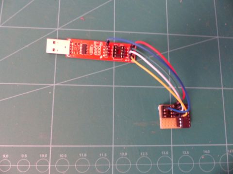 Für die LED-Steuerung ist ein kleines Board mit einem ATtiny84 zuständig. Der hat genügend Anschlüsse und vor allem auch solche mit PWM, um ein einfaches Fading der RGB-LEDs zu realisieren. Der ATtiny84 wird mit der Arduino IDE programmiert. Zum Brennen des Bootloaders und zum Upload des Programms benutze ich den Tiny AVR Programmer von Sparkfun. Der kann den ATtiny85 direkt bedienen. Für die Programmierung des ATtiny84 habe ich mir ein kleines Board gelötet, um die erforderlichen Signale zuzuführen: Der Sockel links erhält die Programmiersignale des Tiny AVR Programmers, in den rechten Sockel wird der ATtiny84 gesteckt. Gruß Achim