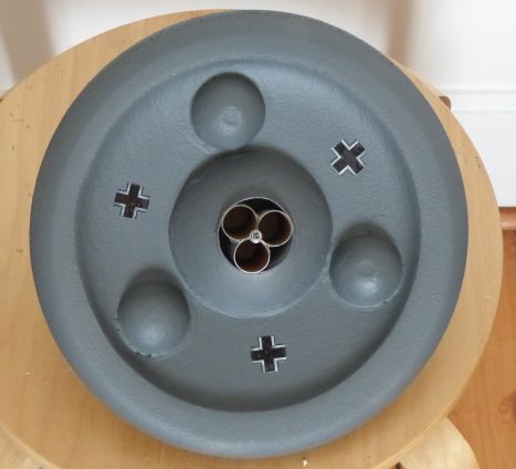 Beim P1-Flugtag stellte sich heraus, dass das Haunebu II Lite auch schon beim Start mit leichtem Seitenwind eine Kopflandung machte. Ist einfach zu leicht. Ich brauche also ein Röhrchen für einen Startstab. Zunächst hatte ich Zweifel, welche Methode für das Bohren durch Styropor, weichen Schaumstoff und wieder Styropor die geeignetste wäre. Dann nahm ich einfach einen langen Bohrer, und die traditionelle Methode des Bohrens erwies sich als am einfachsten. Die Schönheit des Bohrlochs spielt ja auch keine Rolle. Es soll nur das Röhrchen hindurchgehen.
