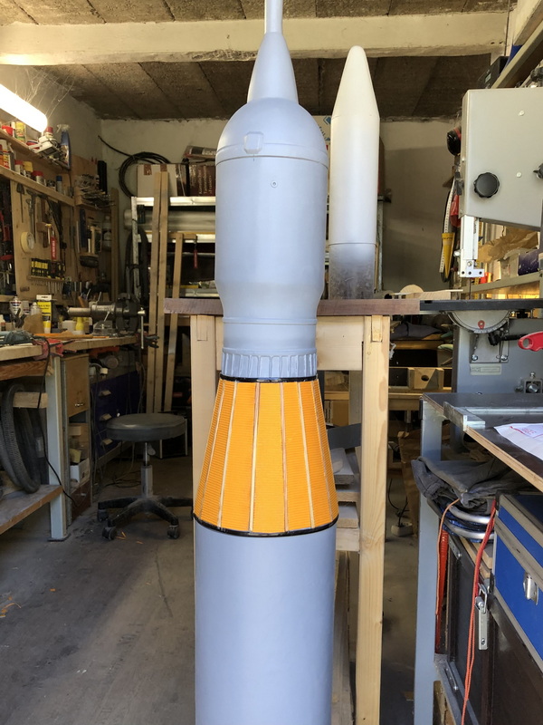 Jetzt habe ich mich doch noch an die wohl schwierigste Scalesache herangewagt. Den Launch Vehicle Space Adapter Ist ja noch nicht fertig, aber man erkennt schon wohin das geht.