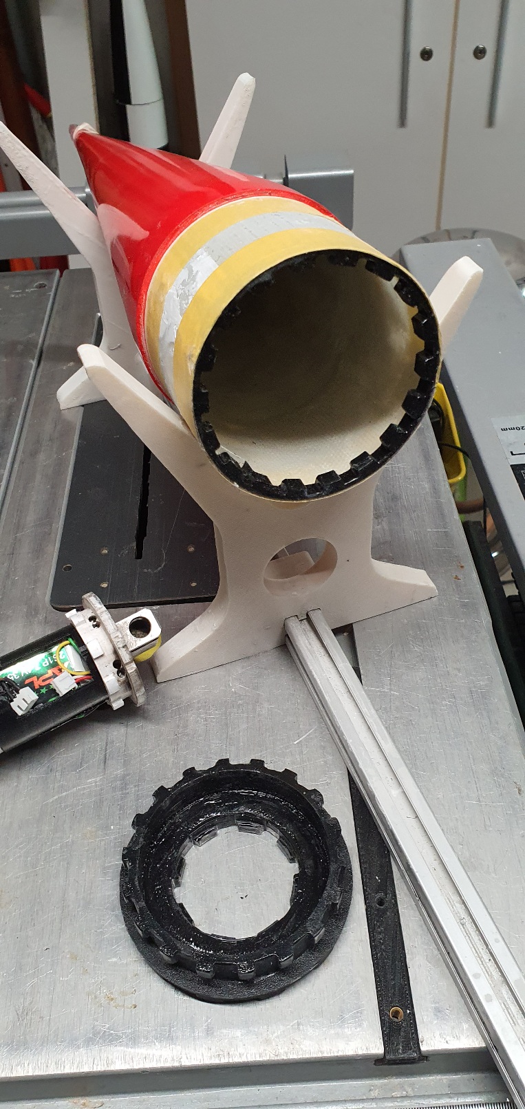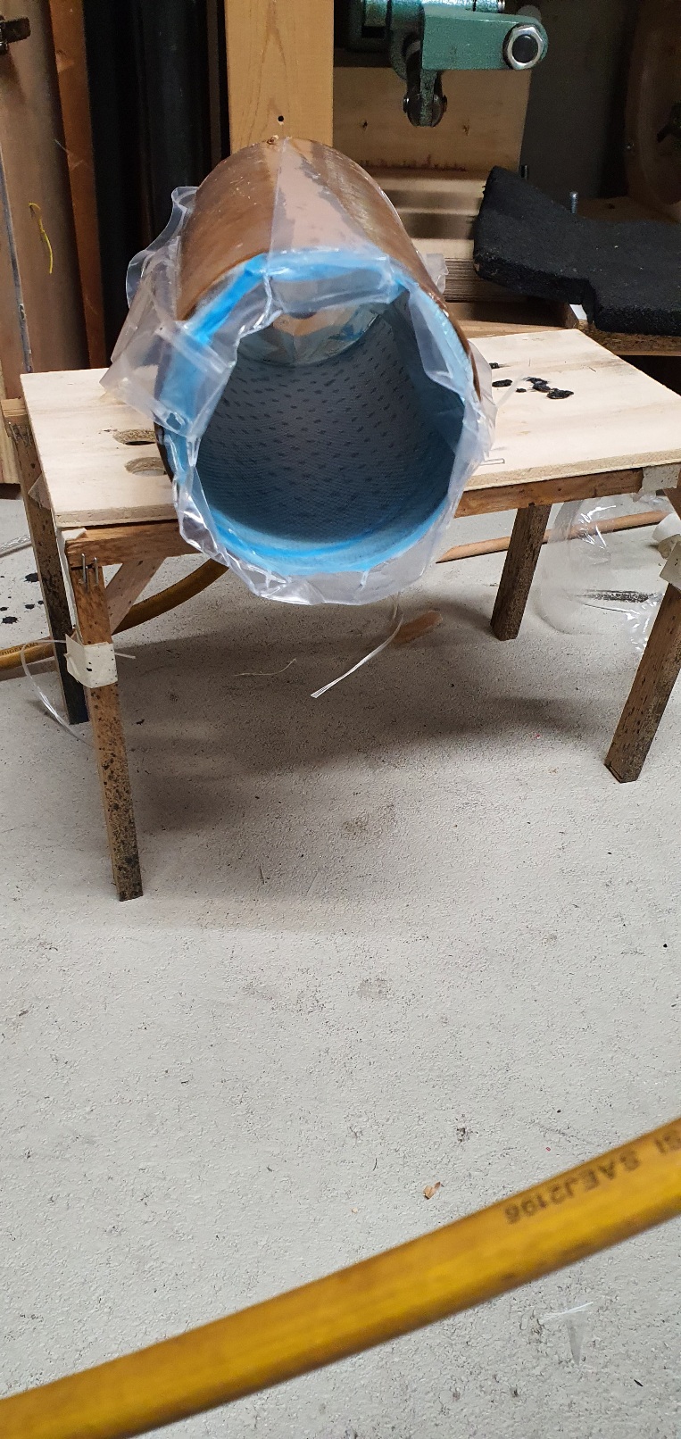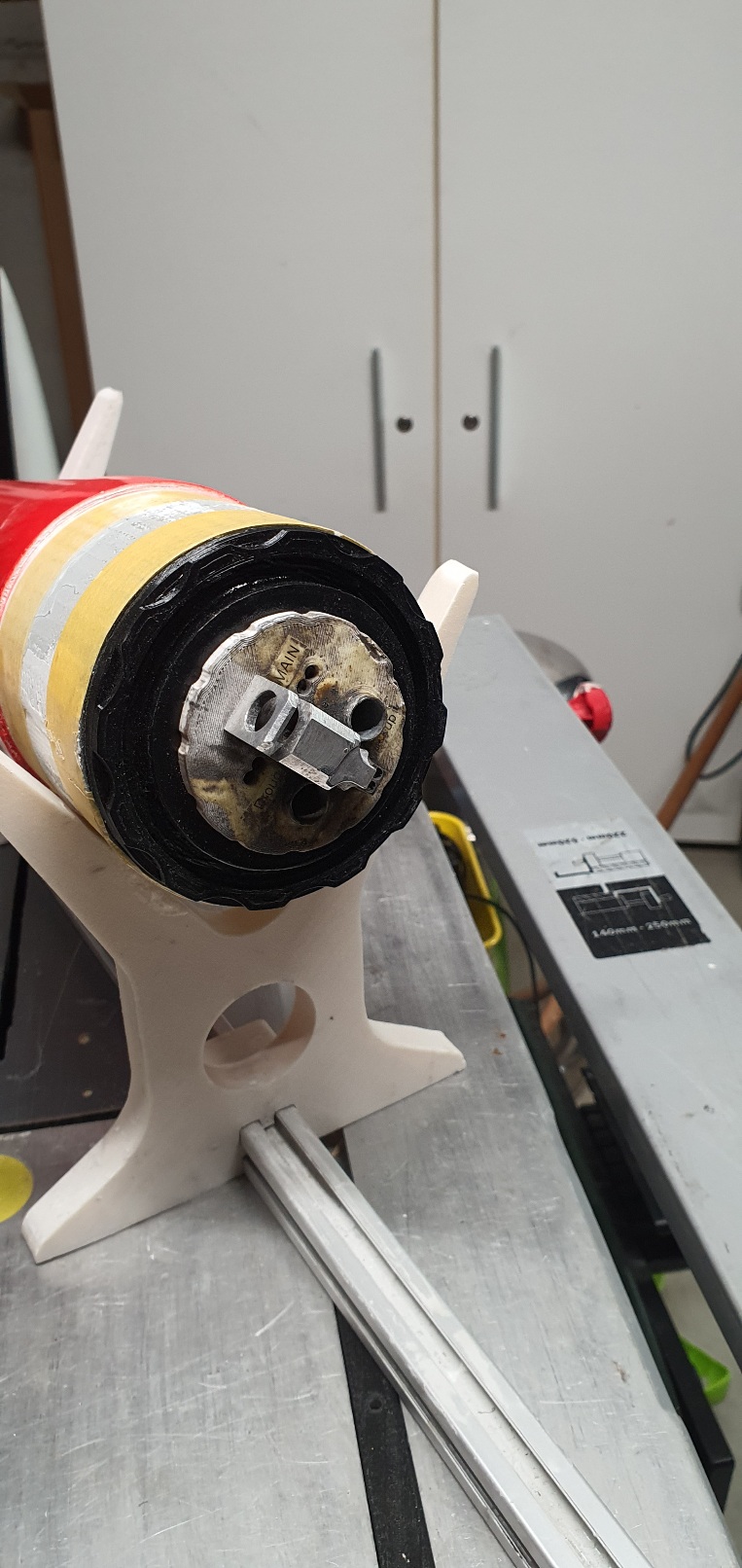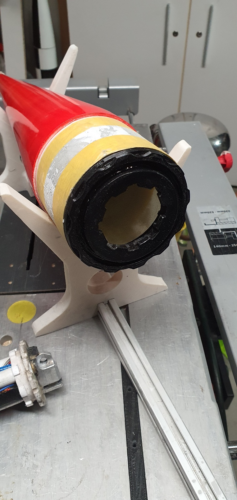 Ich muss noch den Kuppler verstärken und die Rohre schleifen, dann kann ich das Modell zusammen kleben. Die untere Sektion wird mit dem oberen Körperrohr verschraubt. Das macht das Handling mit Hybridmotoren einfacher, hoffe ich. Das angestrebte Leergewicht ohne Motor liegt bei 2800g. Da muss ich mir warscheinlich noch etwas sinvollen Ballast suchen.